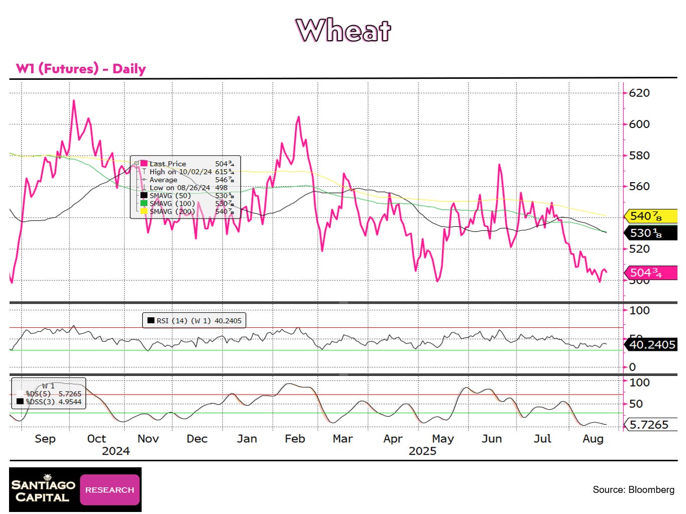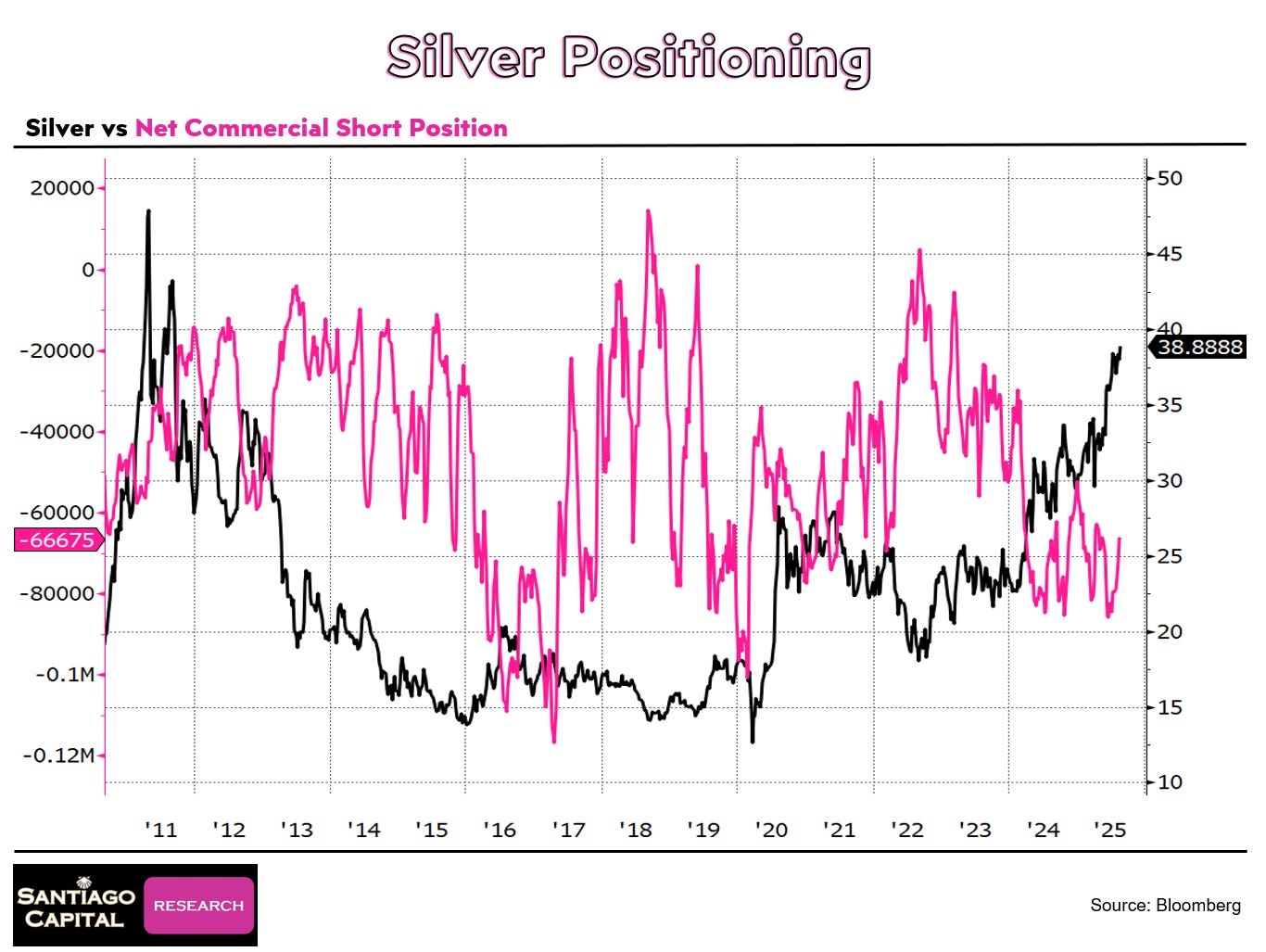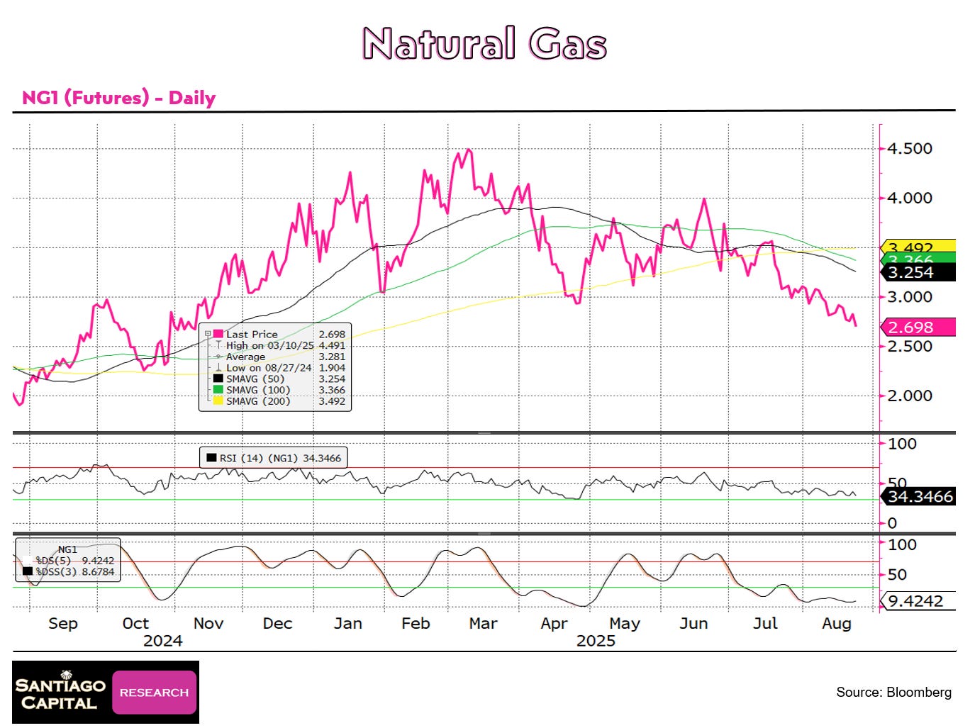 Commodities were mixed: crude oil and natural gas broke down further into oversold conditions, copper fell below support, while gold rose modestly on the week. Silver also edged higher, while agricultural markets like wheat and corn stayed weak and oversold. Positioning data reinforced these dynamics, with copper shorts elevated and gold shorts building modestly.