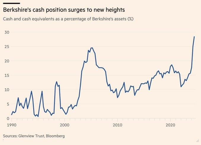 In relative terms, BRK has never held this much cash: