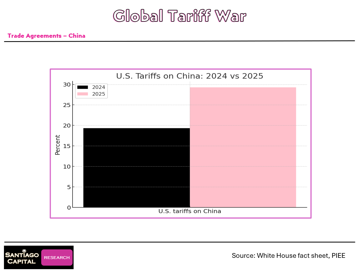 South Korea? Tariffs jumped from negligible to 25%. Taiwan? 30%.