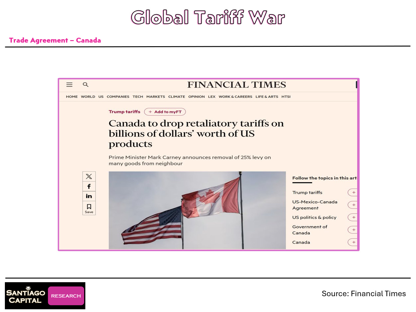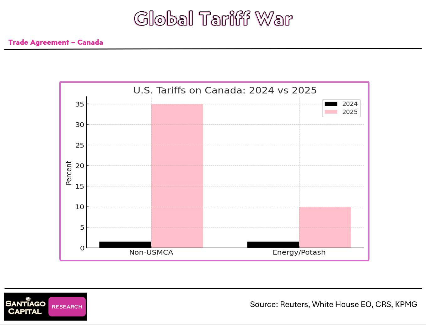 Tariffs on non-USMCA goods leaped to 35%, energy and potash to 10%. And those retaliatory tariffs Canada threatened? Quietly dropped.