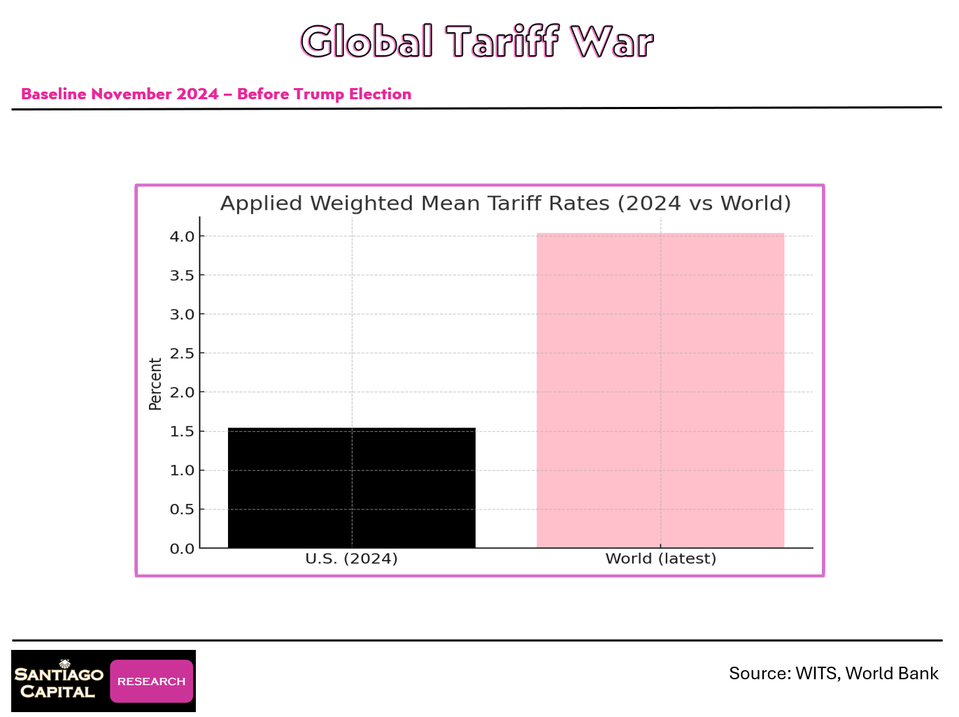 Back then, the average tariff slapped on goods entering the U.S. hovered around a meek 1%…a friendly handshake compared to the world's weighted mean of about 4%.