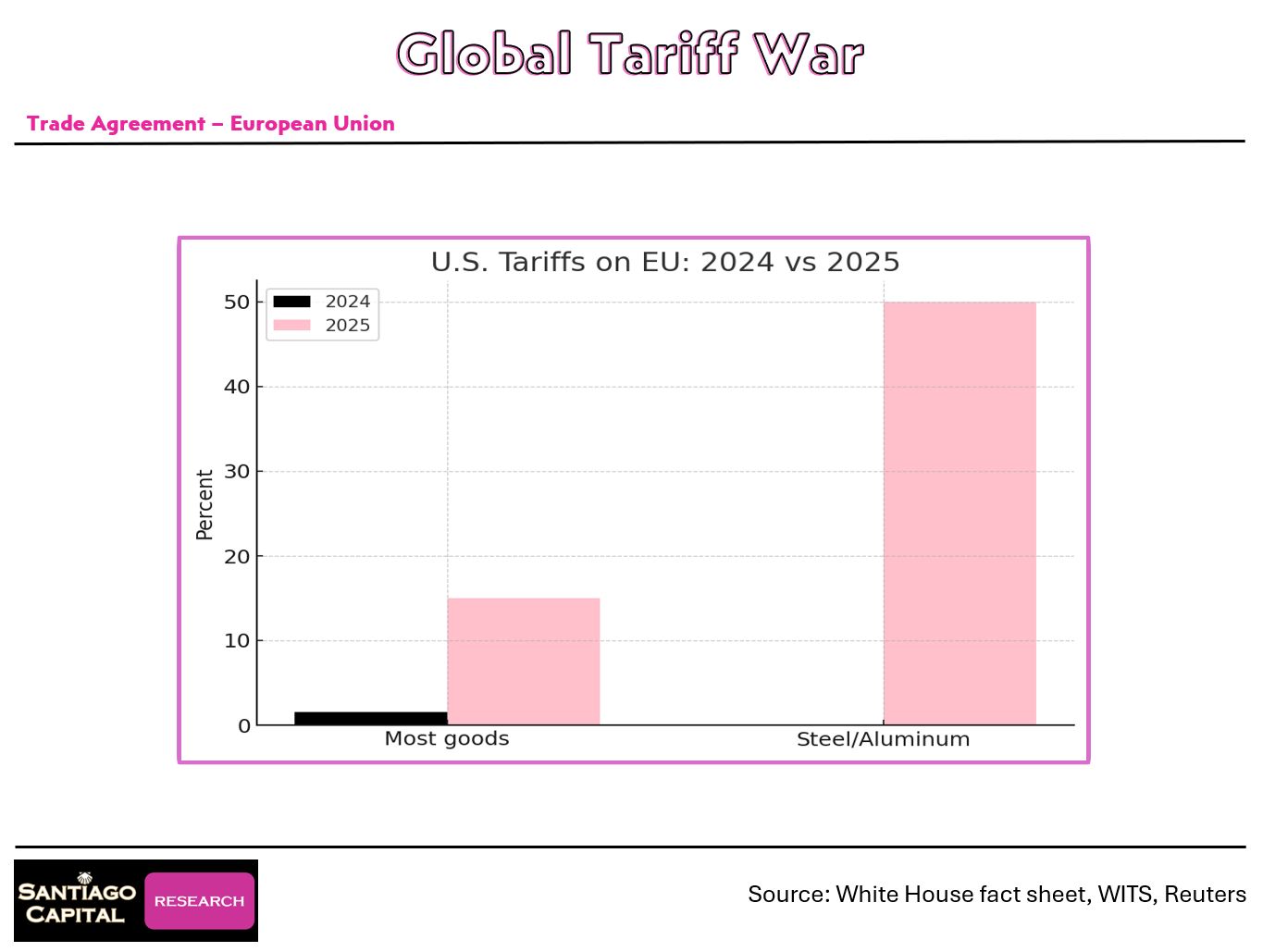 Now, most goods face 15%, with steel and aluminum skyrocketing to 50%.