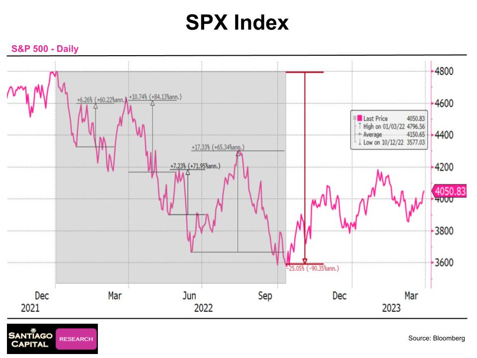 In 2022, countertrend bounces of 6%, 10%, and 17% peppered the landscape. So far this year, the S&P has clawed back 10% from its recent bottom.