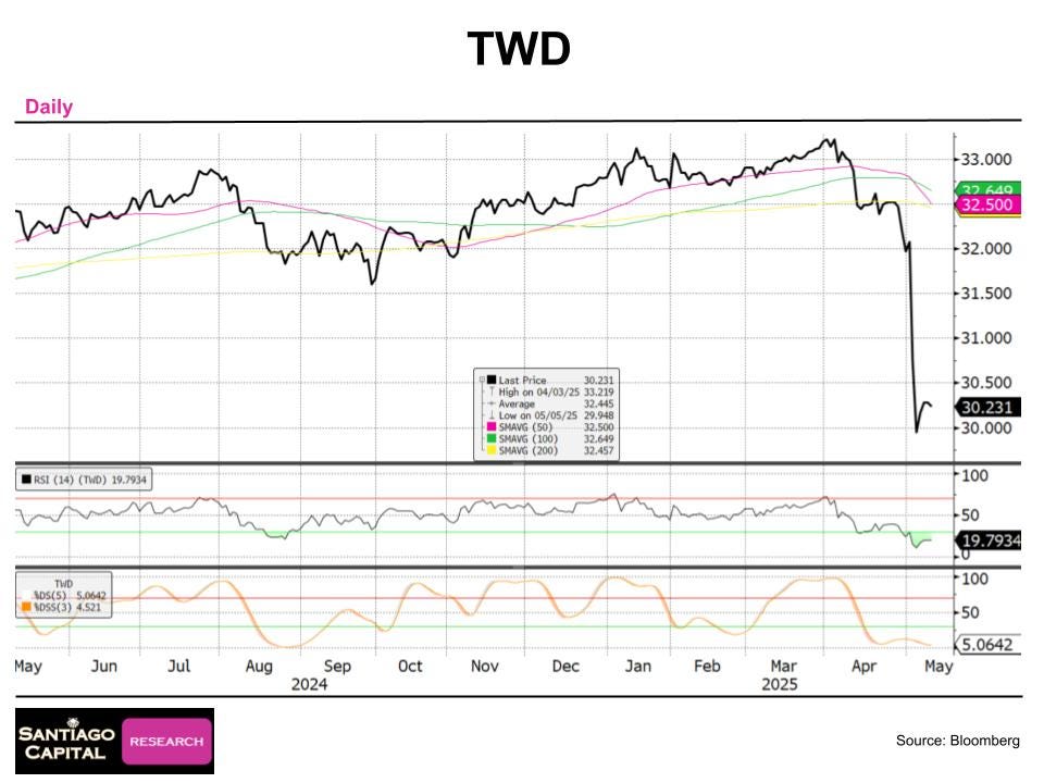 The Taiwan dollar’s recent move could be a preview. If supply chains remain broken…or if tariffs escalate… the stress could spread.