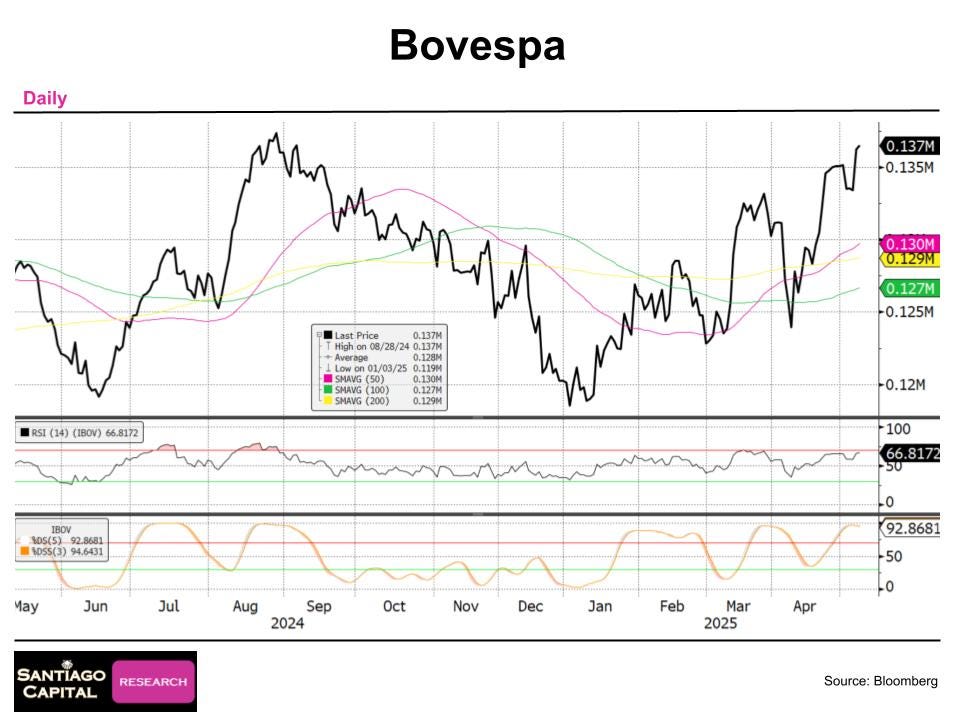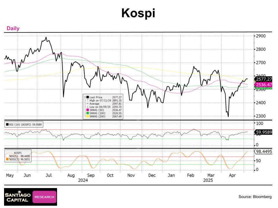 Korea, Hong Kong, and Brazil? High stochastics. RSI in neutral. Bounce fading.