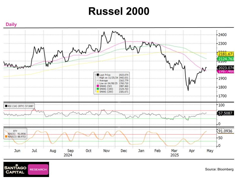 Momentum is peaking. The Russell 2000 has already confirmed the 100/200-day bearish crossover.