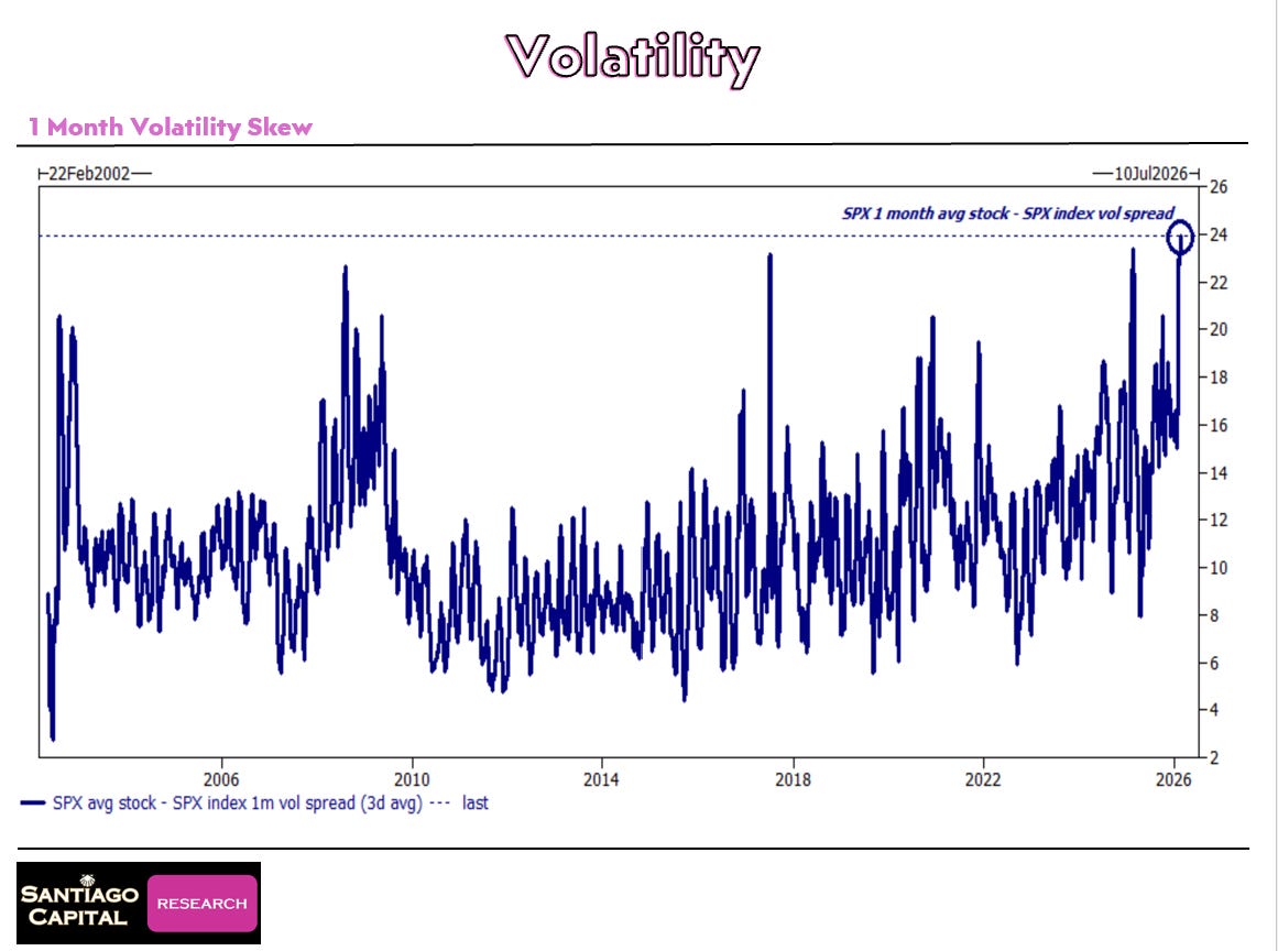 What matters more is what’s happening underneath the surface. The skew on S&P 500 options ... which measures the relative cost of downside protection versus upside speculation ... is as elevated as it has been in 20 years.