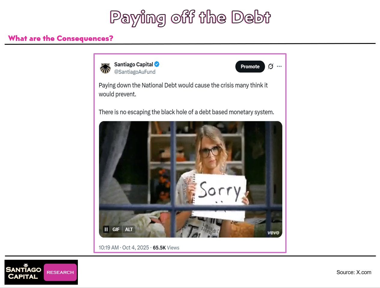 In a debt-based monetary setup, growth is exponential…borrow more to expand, or watch it implode. Whether you let deficits run wild or clamp down hard, the endpoint is similar: a crash. The difference? Timing.