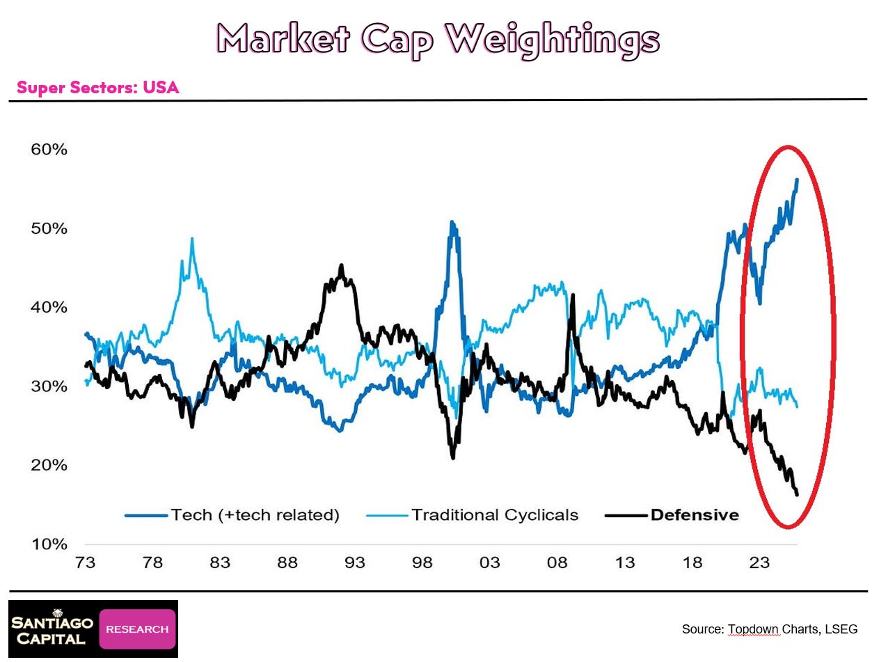 Dig into the indicators, and red flags wave. Valuations stretch beyond dot-com peaks, with over 50% of market cap in tech stocks…passive flows amplify swings.