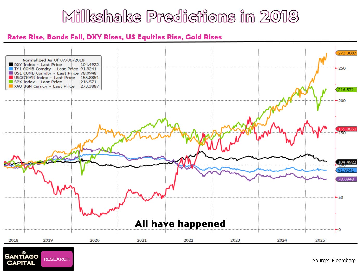 Six years ago, this framework predicted that in the years ahead, rising U.S. interest rates would attract global capital, strengthening the dollar while boosting U.S. equities and gold prices.