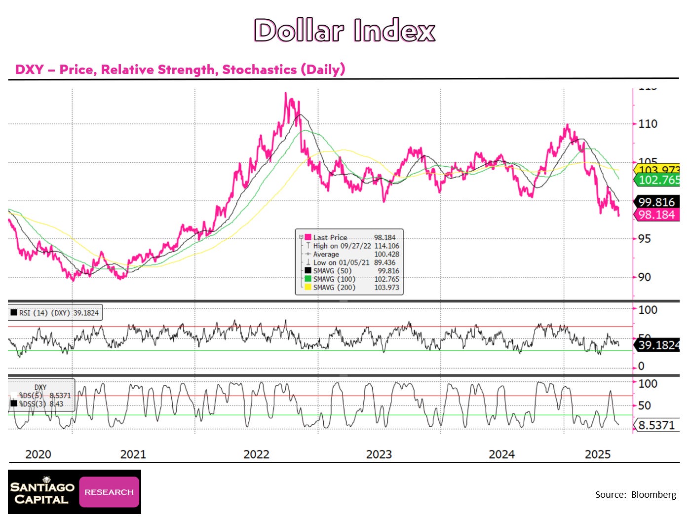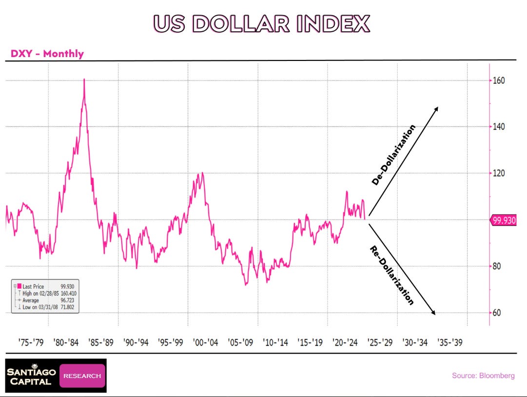 If the DXY continues to slide into the 90s or even 80s, it would delay this reckoning, providing markets with additional liquidity.