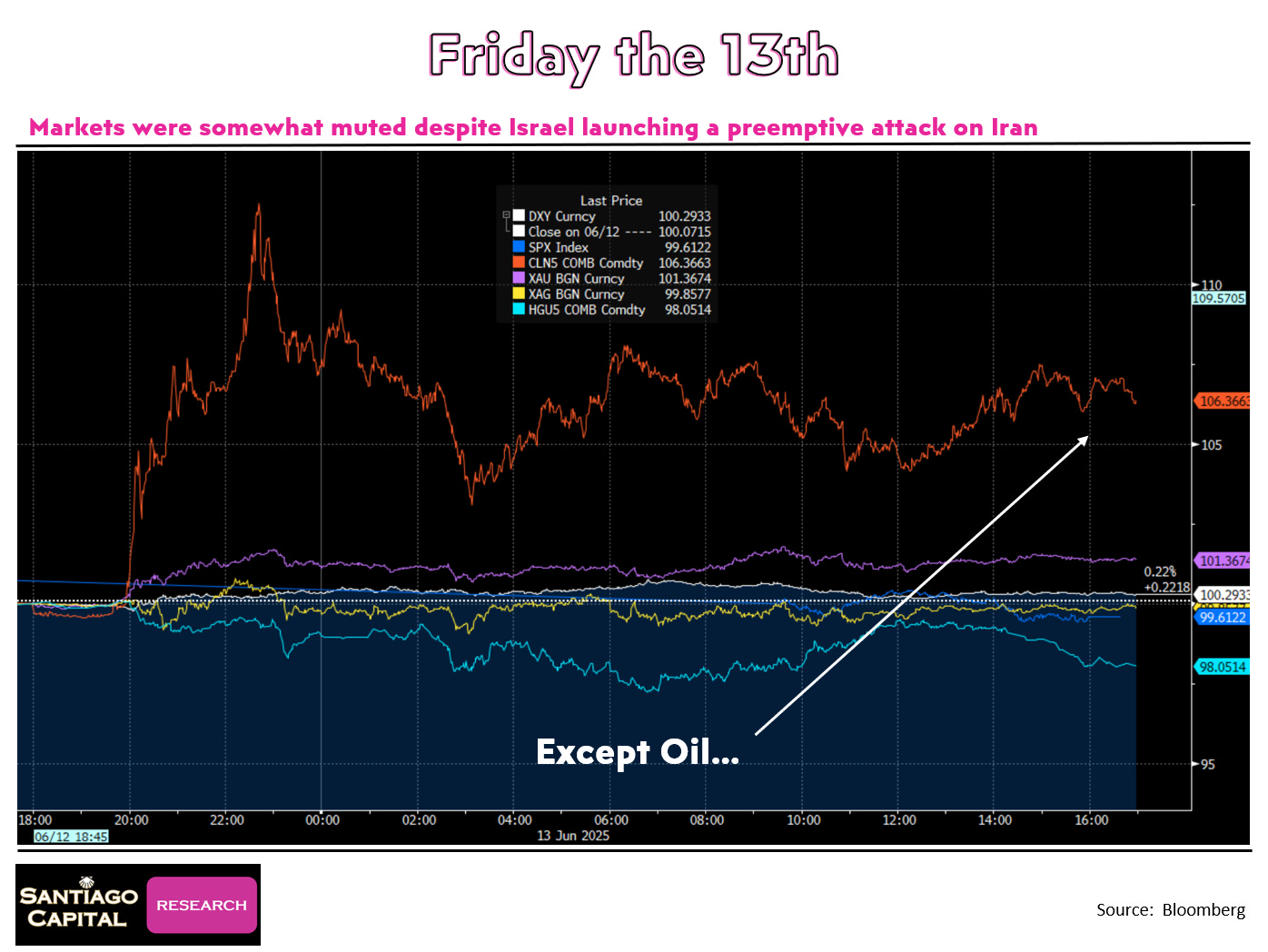 Oil’s sharp rise stood out, but overall market reactions were surprisingly restrained.