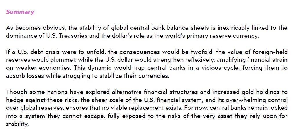 For years, US Treasuries have been the go-to safe haven for central banks, forming a massive chunk of their balance sheets.