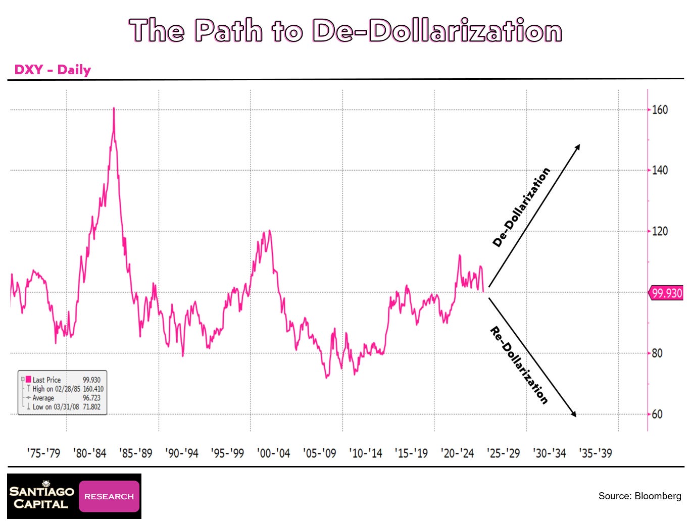 De-dollarization…the buzzword du jour…conjures images of a multipolar world where the greenback fades into irrelevance. But what if the path to that future runs through the dollar getting stronger, not weaker?
