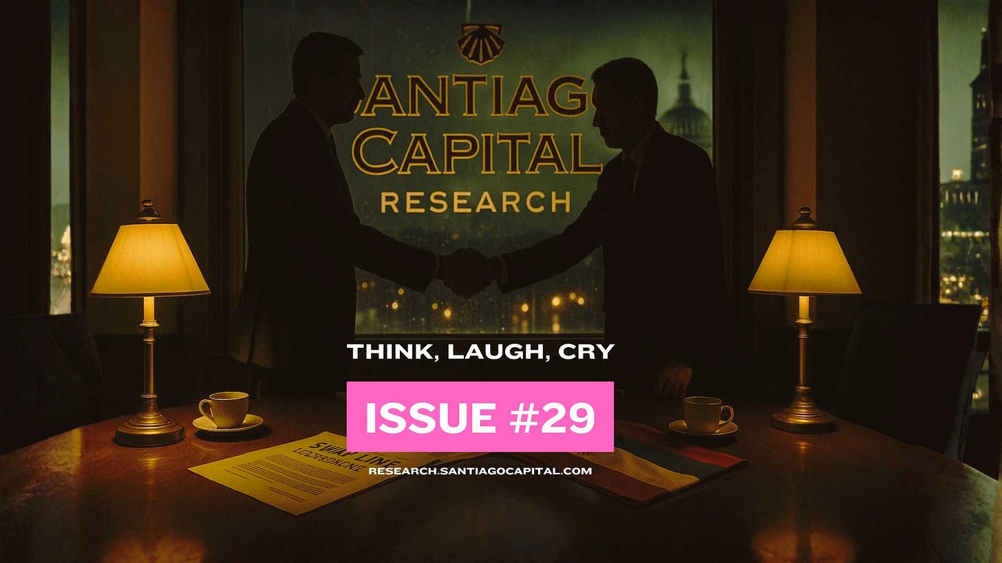 Think, Laugh, Cry Issue #29When nations “help,” is it mercy or strategy? When love fades, laughter hurts—and one father’s loss reminds us why empathy still matters.Santiago CapitalOct 15, 2025∙ PaidShareSubscribeTHINKWhen Washington steps in to “help,” the headlines often write themselves.Some call it diplomacy. Others call it interference. But beneath the surface of every rescue lies a question few dare to ask:Who’s really being saved? This post is for subscribers in the Santiago Capital Pro planUpgrade to Santiago Capital ProAlready in the Santiago Capital Pro plan? Sign inPrevious